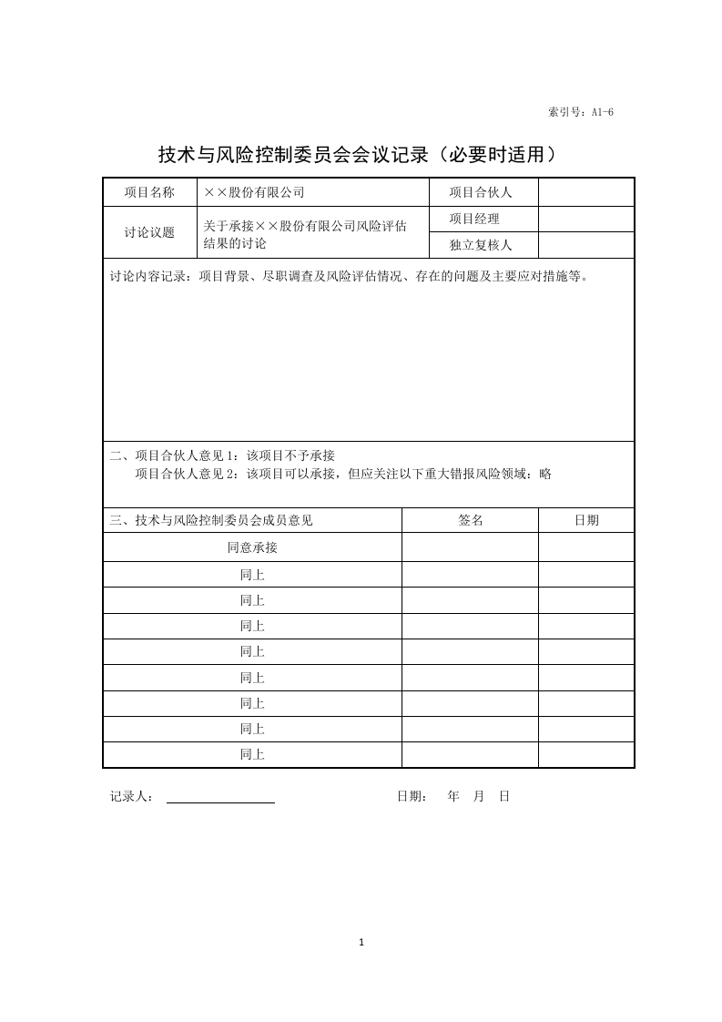 首页底稿模板通用底稿初步业务活动3-技术与风险控制委员会会议记录