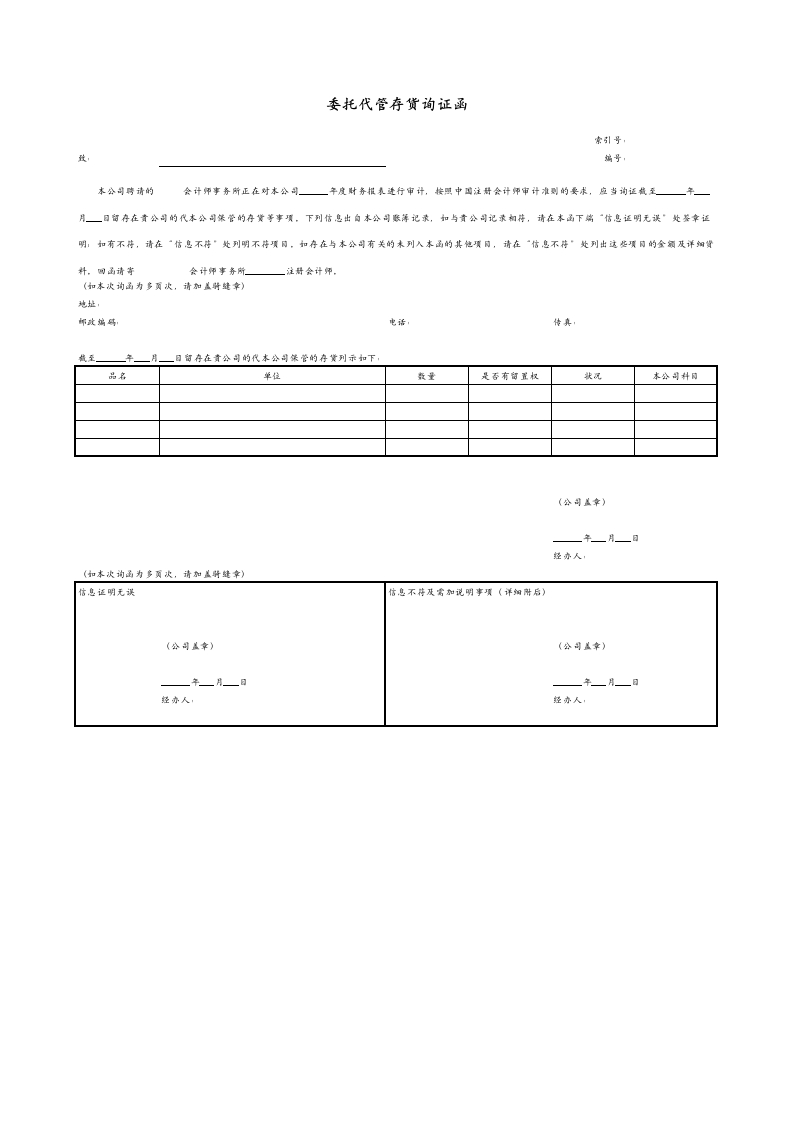 8 委托代管存货询证函
