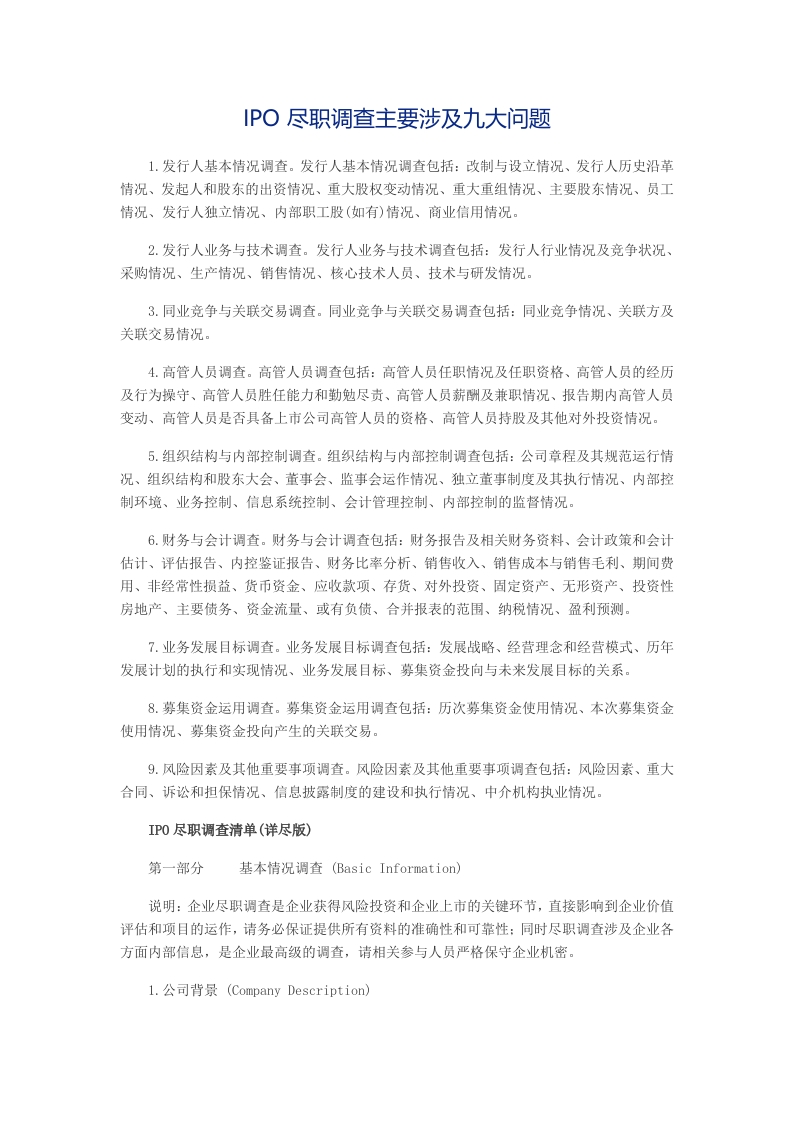 IPO尽职调查主要涉及九大问题