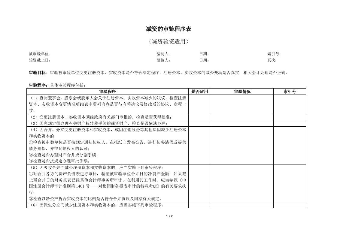 首页底稿模板验资业务4-减资的审验程序