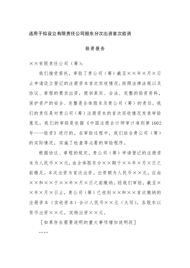 首页底稿模板验资业务验资报告-2设立有限公司分次出资首次适用