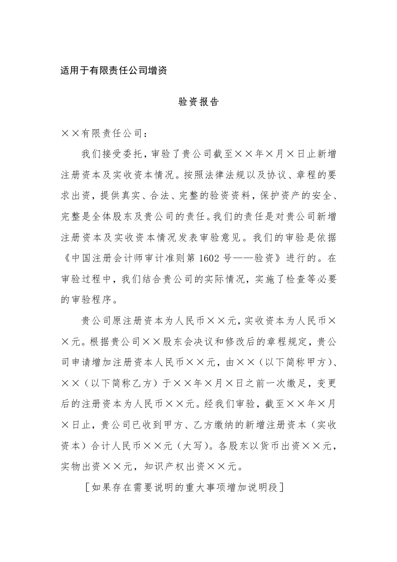 验资报告-5有限公司增资适用