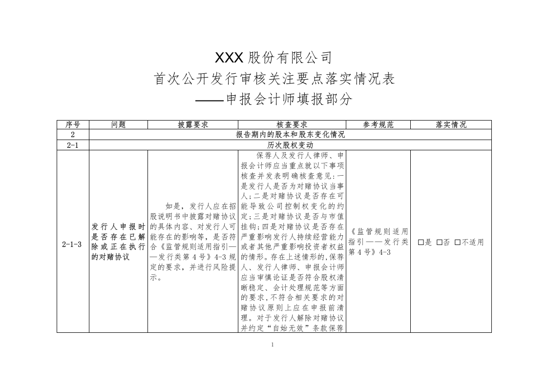 首页报告模板IPO专项1. 首次公开发行审核关注要点落实情况表(申报会计师填报部分)-深交所(2023年6月)