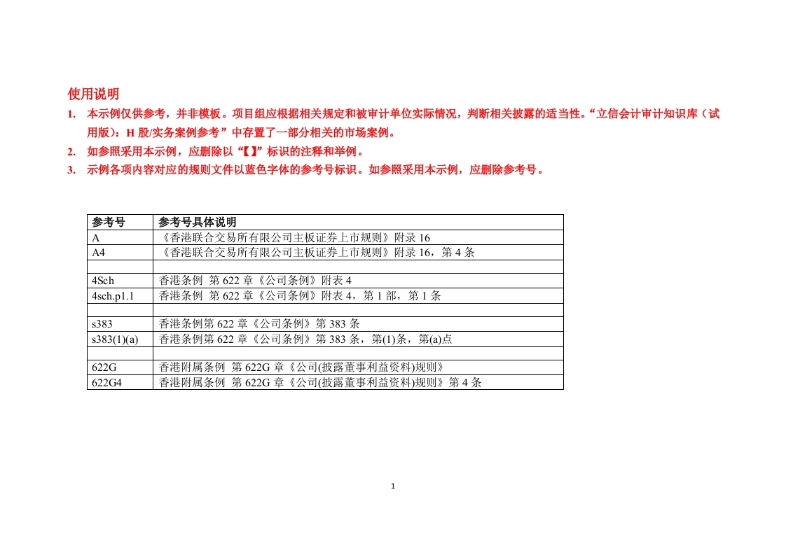 首页报告模板港股专项H股公司年度财务报表补充披露示例_董监高薪酬