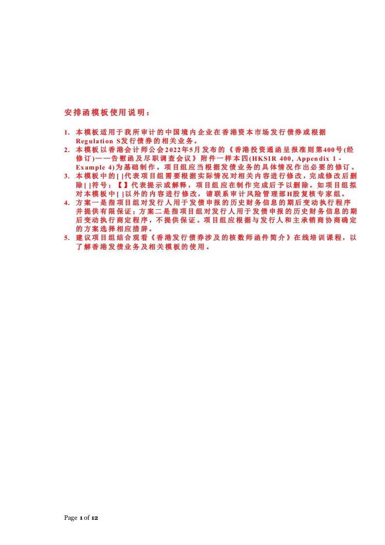 首页报告模板港股专项安排函模板_香港发债_HKSIR 400_arrangement letter for bond offering
