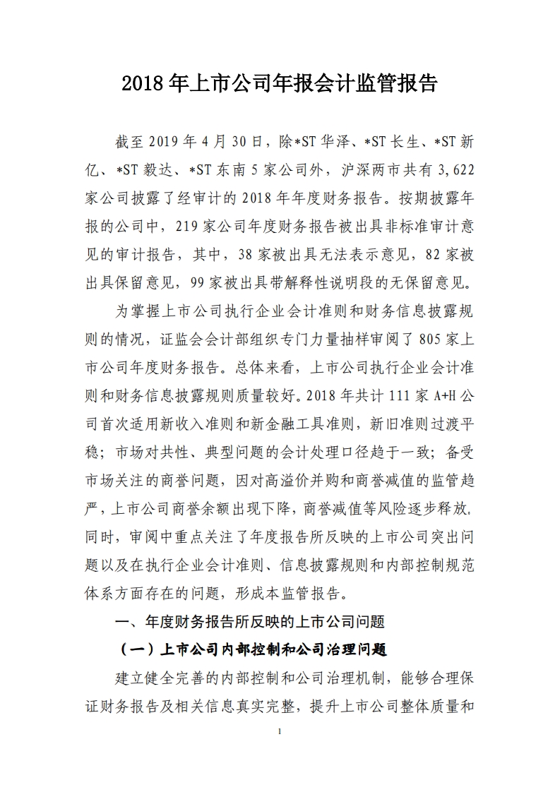 首页监管动态会计监管报告2018 年上市公司年报会计监管报告