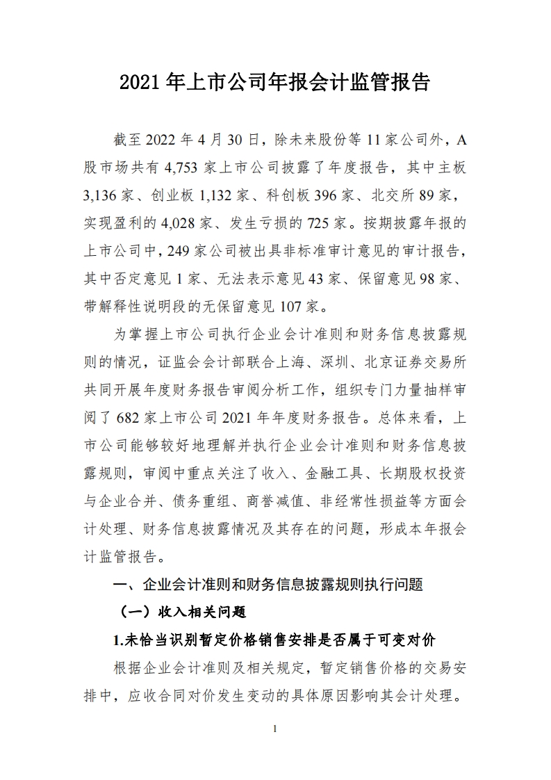首页监管动态会计监管报告2021年上市公司年报会计监管报告