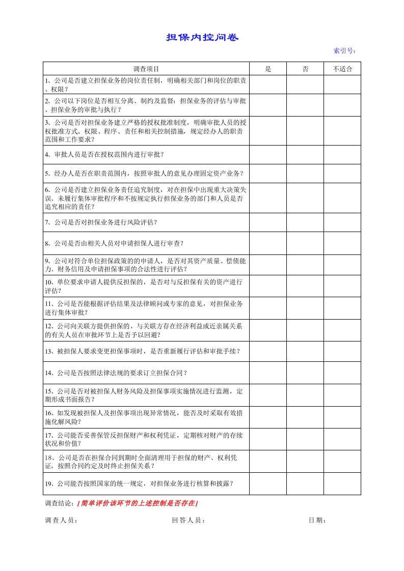 担保内控问卷