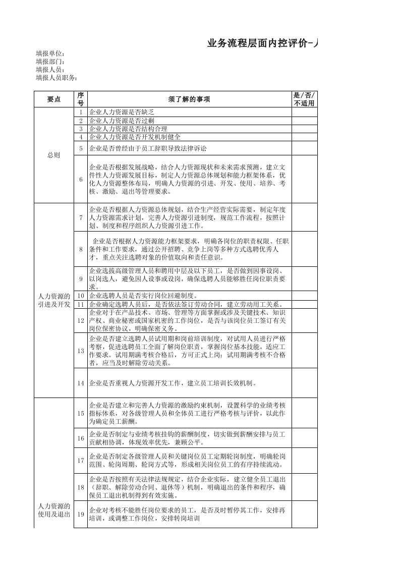 内控调查问卷-人力资源