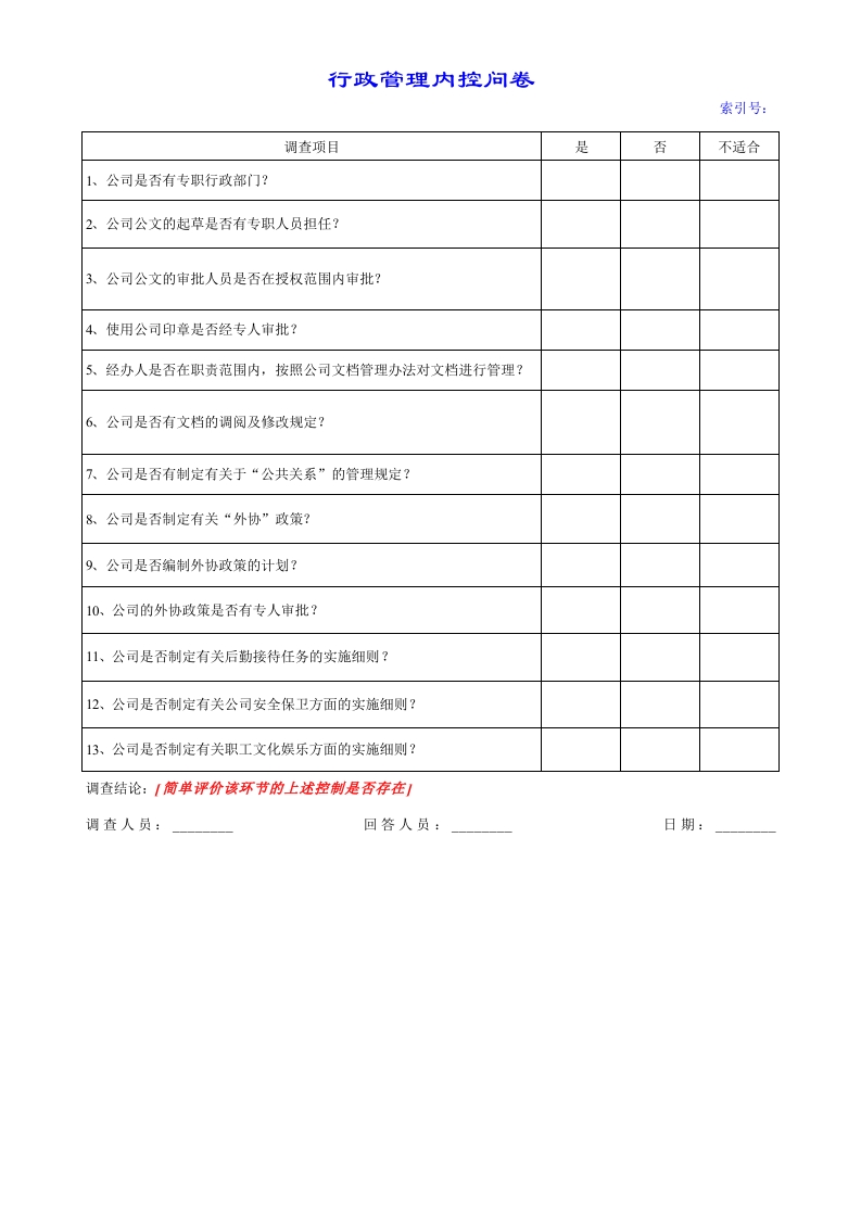 行政管理内控问卷