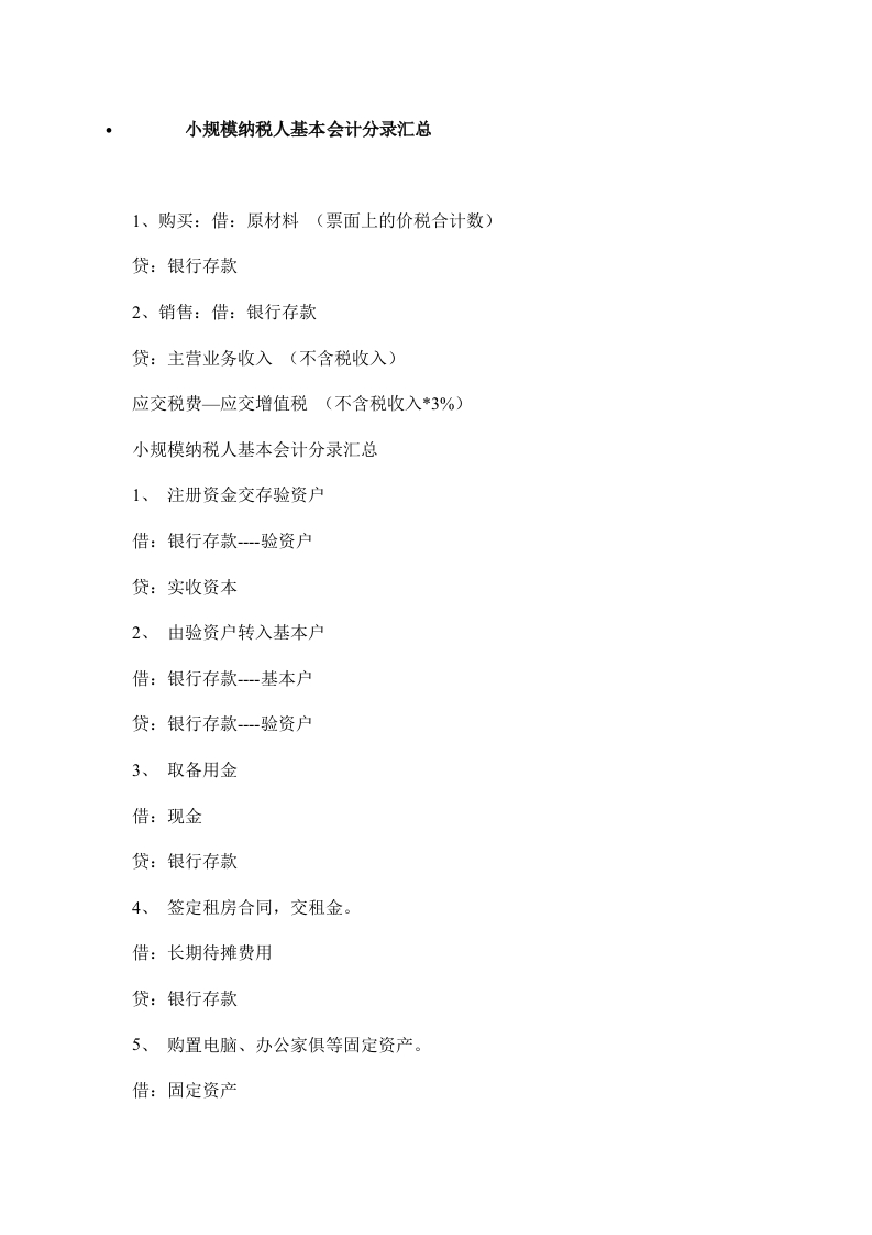 首页会计核算行业分录24.小规模纳税人基本会计分录汇总