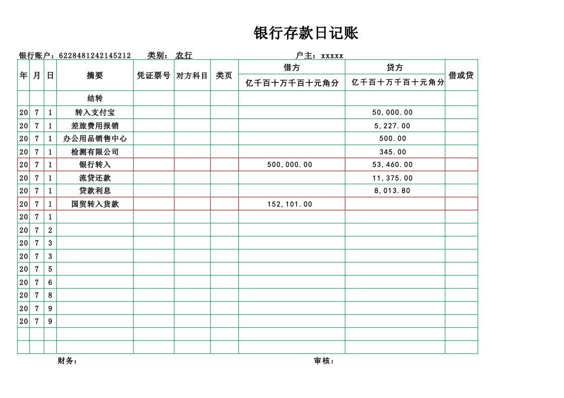 首页会计核算出纳记录86银行存款日记账
