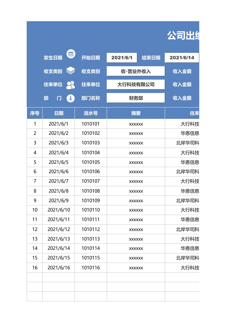 首页会计核算出纳记录98公司出纳财务收入支出记账表格
