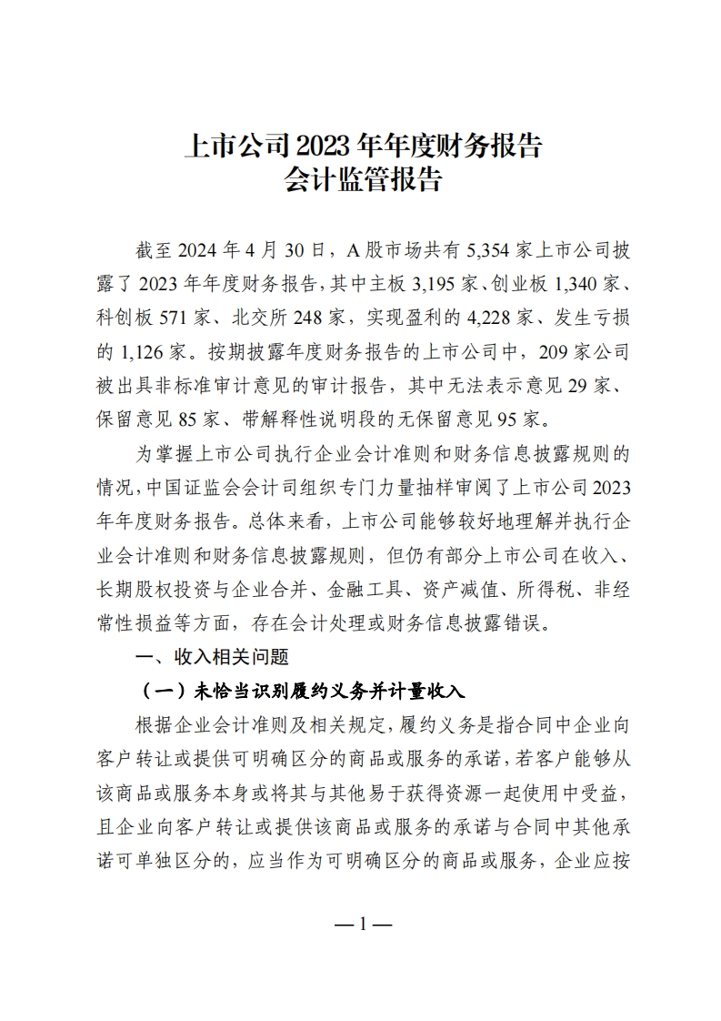 首页监管动态会计监管报告上市公司2023年年度财务报告会计监管报告